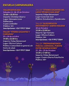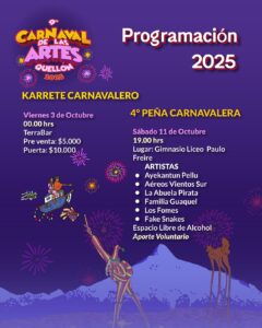 Este año, las actividades comienzan el 11 de octubre con una Peña Carnavalera a las 19:00 hrs en el Gimnasio del Liceo Paulo Freire.